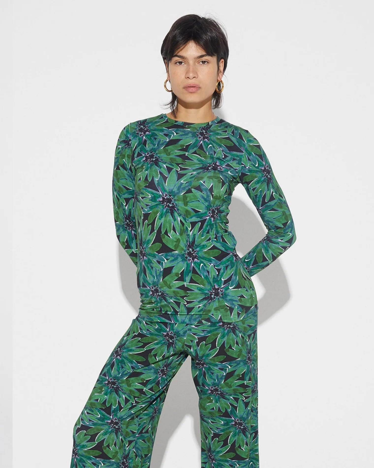 The Lezlie Longsleeve Top Green Is The Perfect Solution For When You Need To Deliver Maximum Style With Minimal Effort. This Fitted Top Features A Beautiful In-House Print Design That You Can Flex With Matching Palazzo Pants. Get Ready For Compliments!