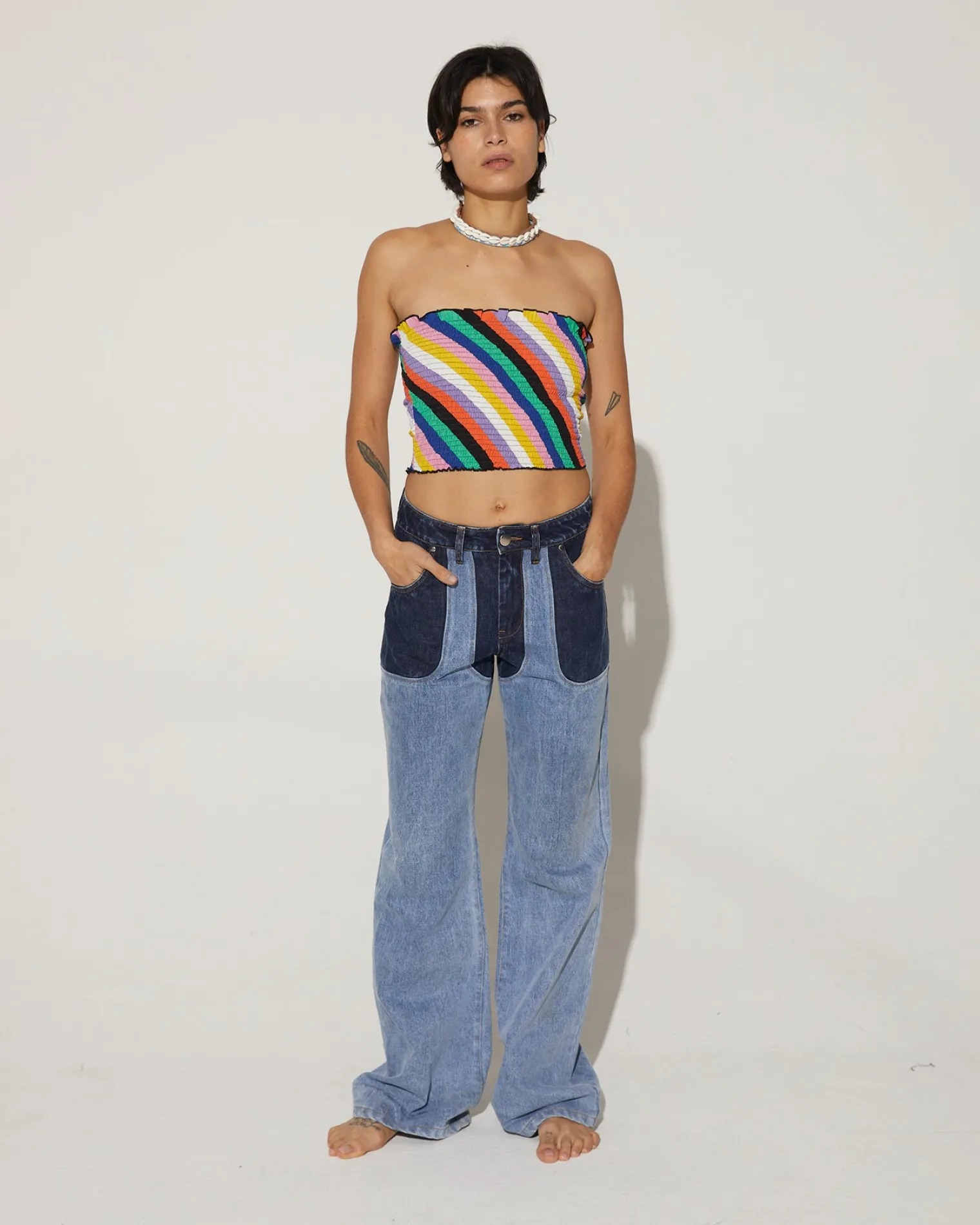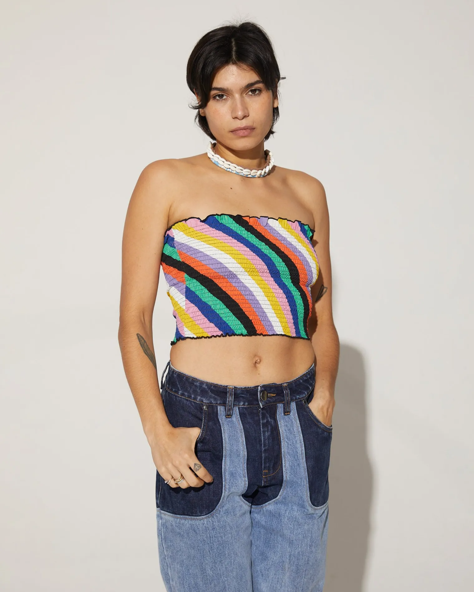 Take On The Summer In The Estel Smocked Top! Featuring A Bold Printed Multicolor Stripe, This Striking Smocked Bandeau Top Will Take Your Look To The Next Level.