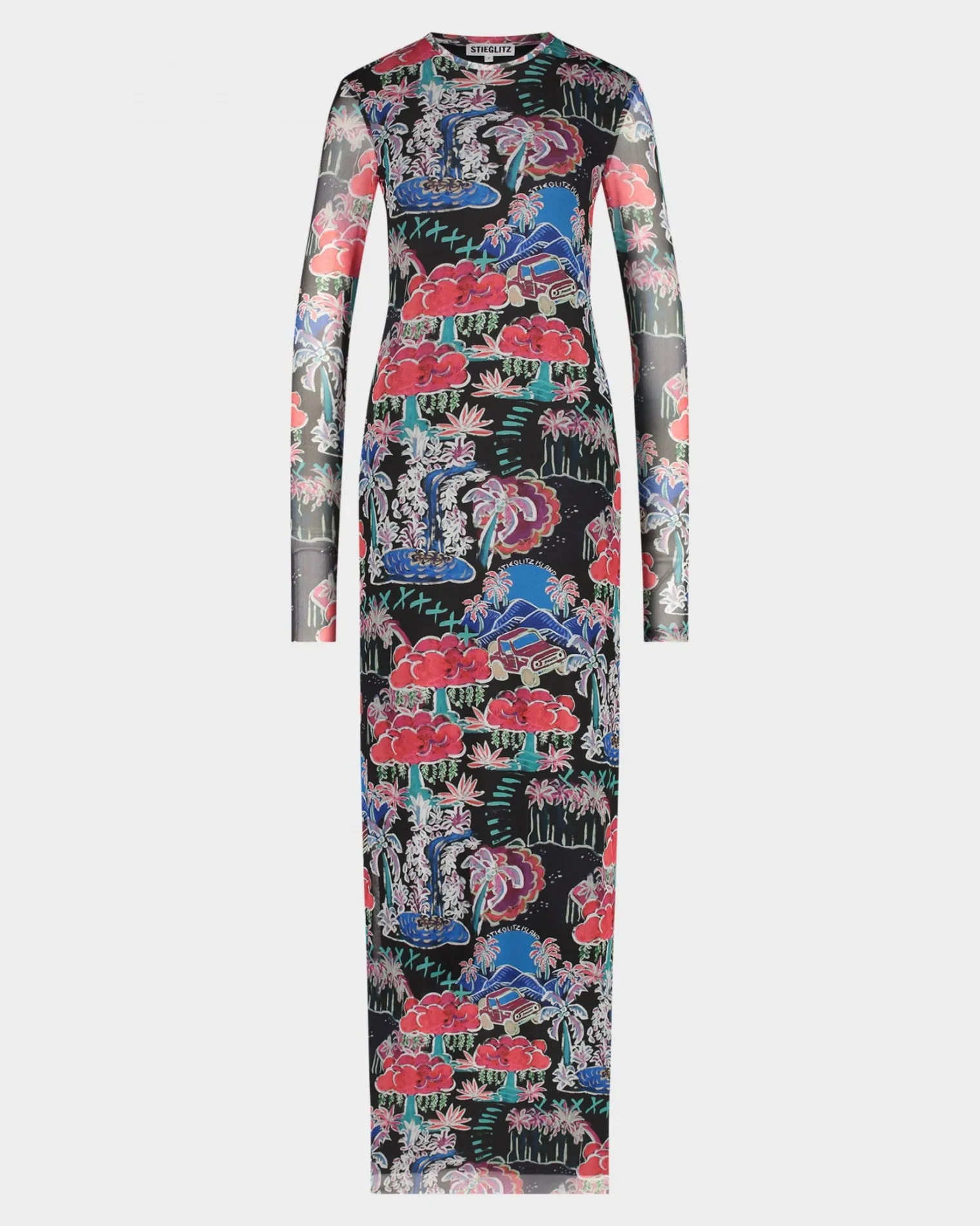 Maxi Mesh Dress With Round Neck Collar
